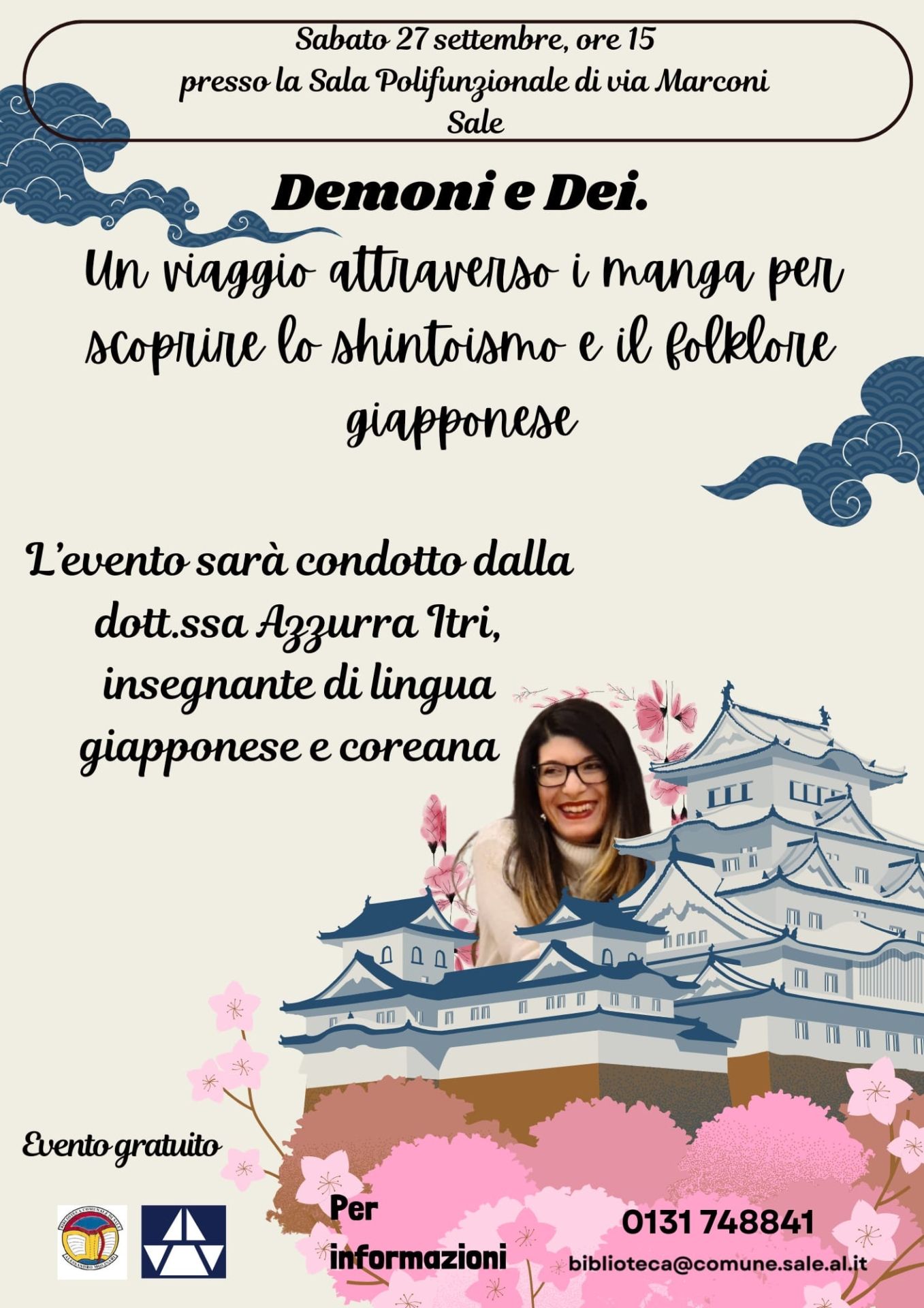 Vi aspettiamo sabato 27 settembre alle ore 15.00 in Sala Polifunzionale di via Marconi; sarà nostra ospite la dott.ssa Azzurra Itri, insegnante di lingua giapponese e coreana. Parleremo dello shintoismo e del folklore giapponese attraverso i manga, non mancate!