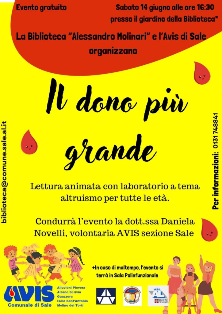 Sabato 14 giugno, alle ore 16.30, si terrà il laboratorio “Il dono più grande” nel giardino della biblioteca (in caso di maltempo in Sala Polifunzionale).