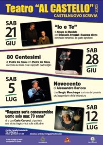 Sabato 21 giugno 2025 inizia la rassegna Teatro al Castello, quattro appuntamenti con la commedia romantica, con un padre e un figlio, con il leggendario pianista sull’oceano e una ragazza seria….